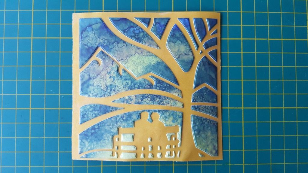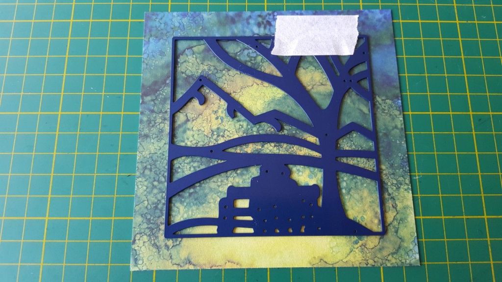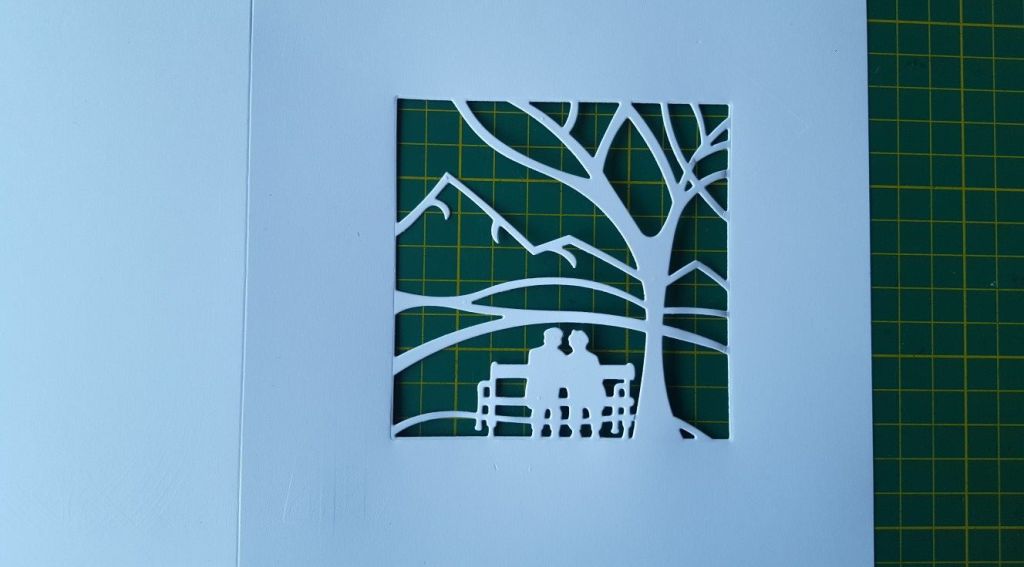 Then cut the die out again on the front of your card (I used a 7×7 square card for this one). The tricky bit is then lining up the two images, so the pieces on the adhesive acetate slot into the die cut on the front of the card.