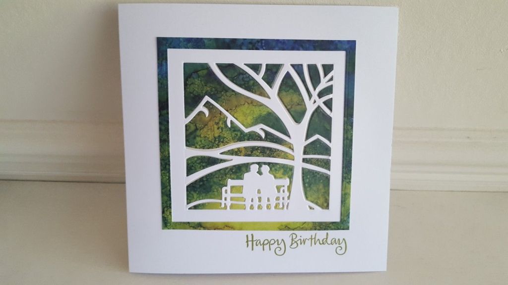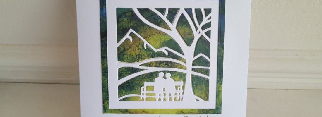 Hello, and welcome to my little crafty blog. Thanks for dropping in. I’m sharing a birthday card I made for a friend’s father, which seemed an appropriate image as the UK government has announced this week that some of the lockdown restrictions have been eased. We can now go and meet a friend in a park (although I think these two are probably sitting too close together to comply with the rules!). Fortunately, there’s no sign of anyone else in sight, so they’ll probably get away with it…