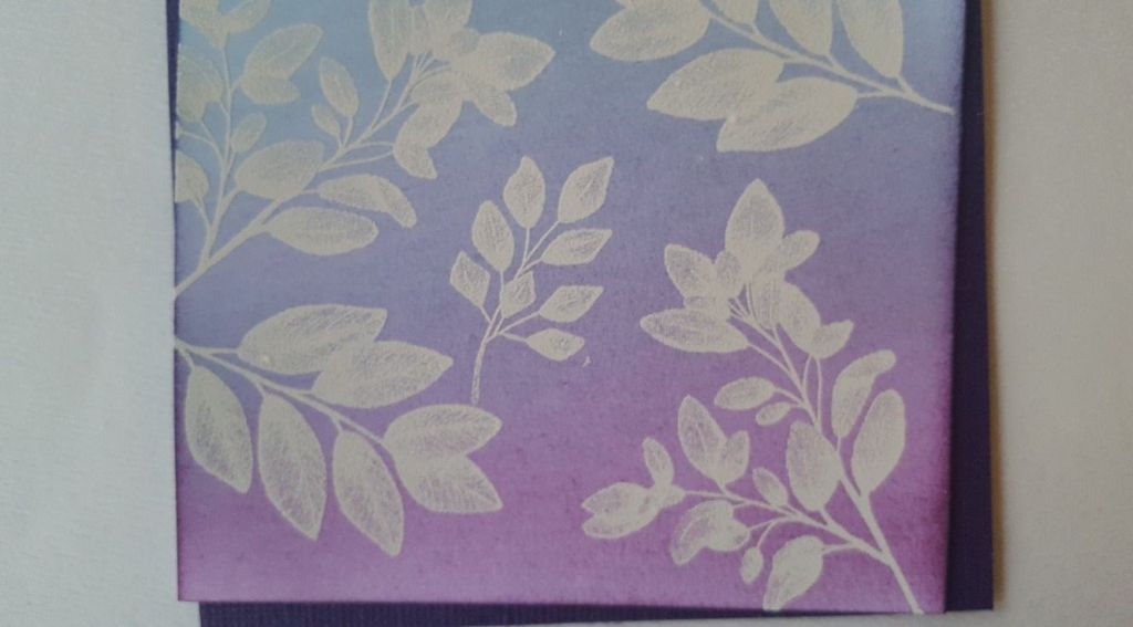 I then used several of the leaf stamps from the ‘forever fern’, stamping them with Versamark and heat embossing in white.