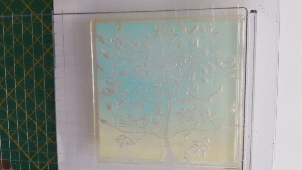 It’s such a lovely detailed stamp. I decided to leave the picture white, and just colour in the background using stamp 3 from the set. I’ve just treated myself to some Distress Oxide inks so wanted to play with them as well! I used ‘mermaid lagoon’ and ‘bundled sage’, dabbing them onto the stamp using a sponge. This is a great technique, as you can blend the inks on the stamp before putting it onto your card