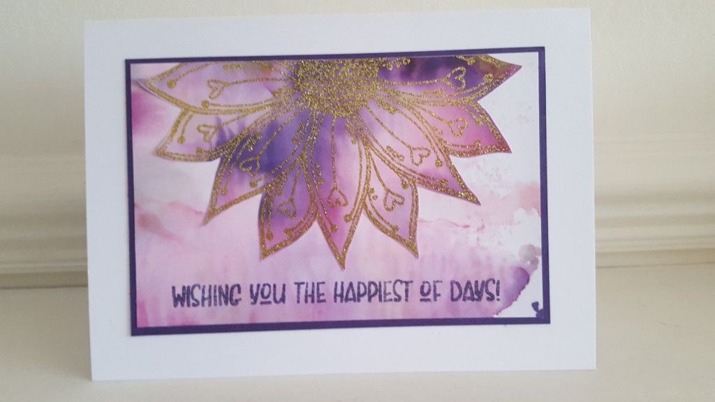 I love the richness of the sparkle from the embossing powder against the purple. It’s so lovely as well to have happy news at the moment, as everything else still seems so uncertain. I have managed to re-retire from work though, so am planning to indulge myself with more time for crafting and blogging (when not sorting the house out!).