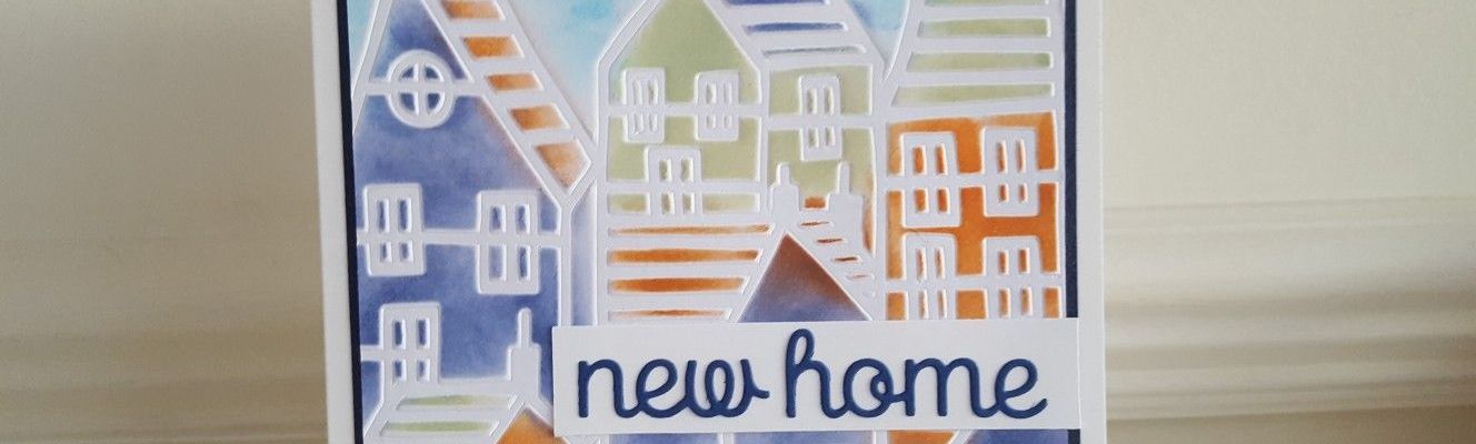 Welcome to my crafty blog. Today’s card is a new home one I made for my niece, using Claritystamp’s ‘Townhouse’ stencil. I love this image – it’s great for making cards with a more urban feel when I don’t want a country cottage effect