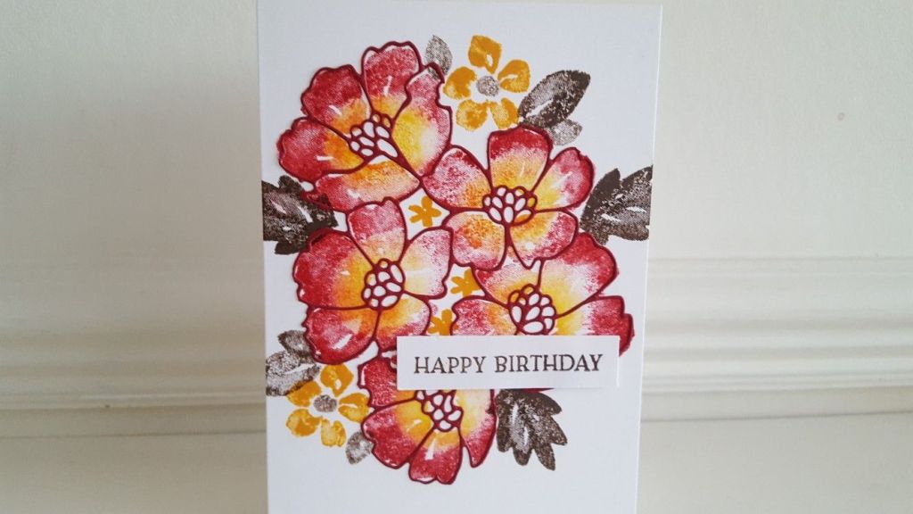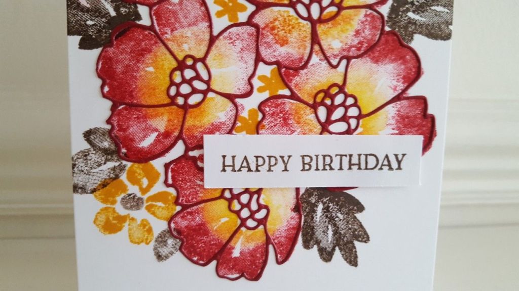 Today’s card was inspired by a recent online class I caught up with from Joanne James (aka the Crafty Owl), using the Stampin Up! ‘blossoms in bloom’ set. I used the colours and picture from this week’s Color Throwdown challenge https://colorthrowdown.blogspot.com/ – I really like the autumn feel in the card (although not quite so happy about saying farewell to summer!)