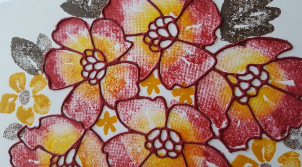 I wanted to give the large flowers some more definition, so used the co-ordinating die set to cut out the outline of the flowers. The die has leaves and small flowers attached so I snipped those off, just leaving me with the central blossoms