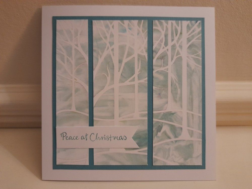 Welcome to my crafty blog. I’m still busy making Christmas cards – this one is for a friend who’s not a Christian, so I went for a more general scene and sentiment. It’s sparkly as well, but that doesn’t show up in this picture!