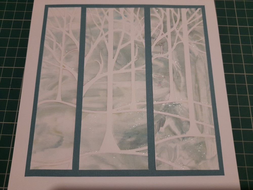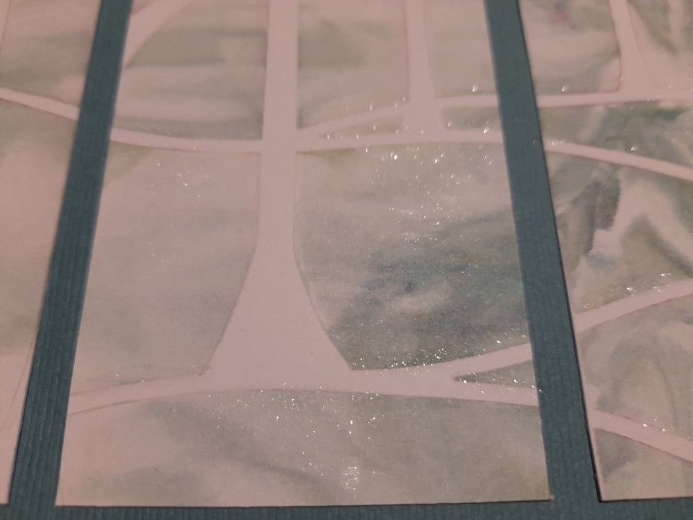 I decided to cut the three panels out of the stencil, rather than leave it as one piece of card, and mounted them on a piece of co-ordinating cardstock.