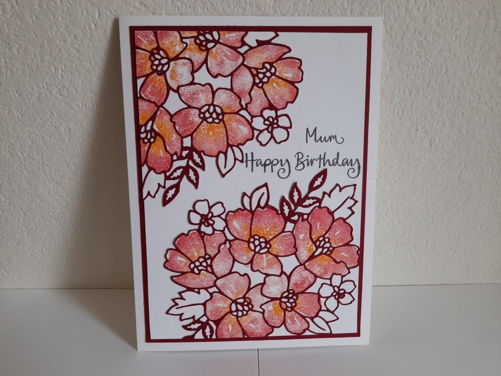 Welcome to my crafty blog. I’m having a bit of a break from making Christmas cards at the moment, and sharing a card I was asked to make for a friend’s mum. I’ve realised it’s very similar to one I blogged last month, but I do love the ‘blossoms in bloom’ set from Stampin’ Up