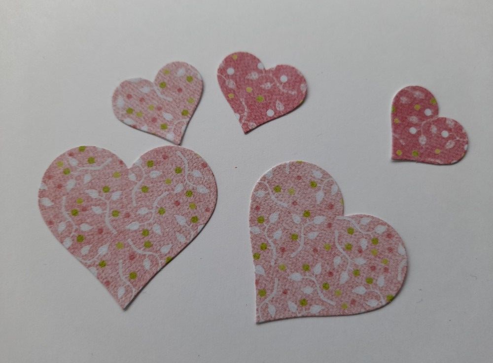 I started by cutting out several hearts from some paper I’ve had for ages, using the Claritystamp nested heart dies