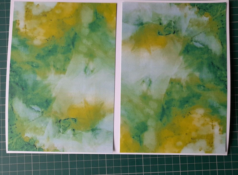 I then used two of the 8×8 backing papers in the same colours to cover the card blank. Obviously a sheet of 8×8 paper won’t cover an A4 card, so I got round this by initially cutting both pieces down to leave a small gap in the centre of the card.