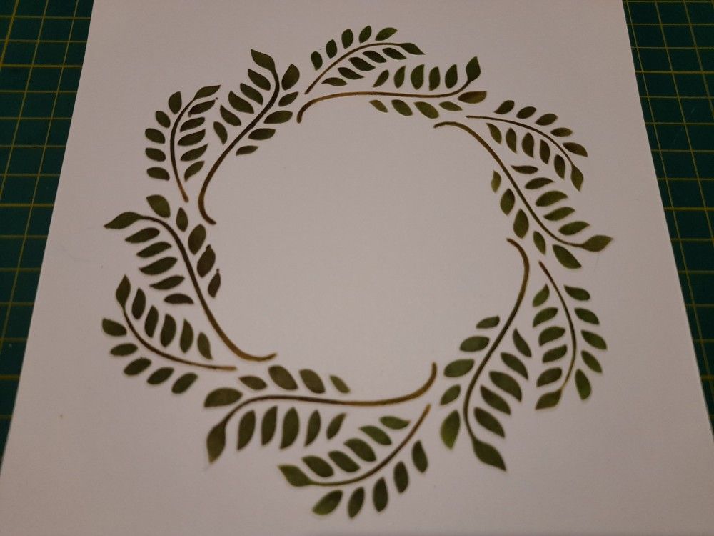 The birds are from the ‘bird and flowers rows’ stamp set. I didn’t want to use the whole row of birds, as they are wider than the centre of the wreath, so I made a mask by cutting a circle out of a piece of copy paper. I then lined the birds up and stamped them across the centre of the wreath, using Archival ink in ‘potting soil’.