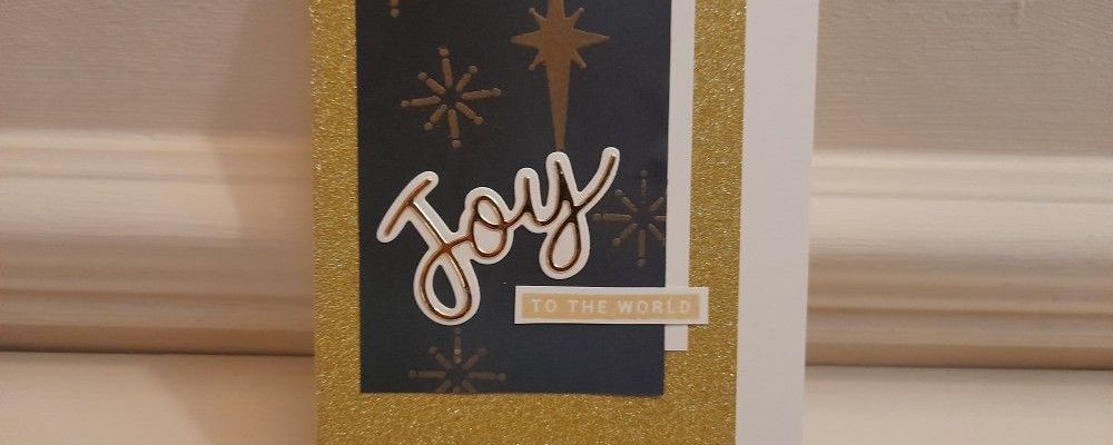 Next was to cut out ‘joy’ in gold card, and the backing mount in white. I also stamped ‘to the world’ and embossed it with the WOW powder before trimming it down to leave a narrow white border. These both then sat nicely on the front of the card