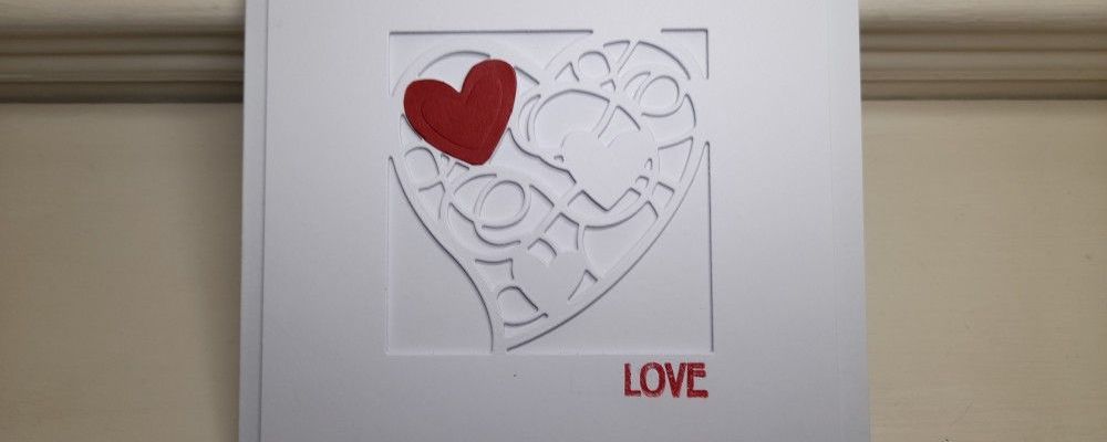 I then recut the die into a small scrap piece of red card, so that I could snip out the heart from the top left, which I stuck onto the white die cut