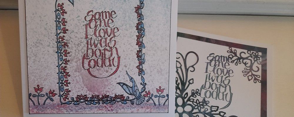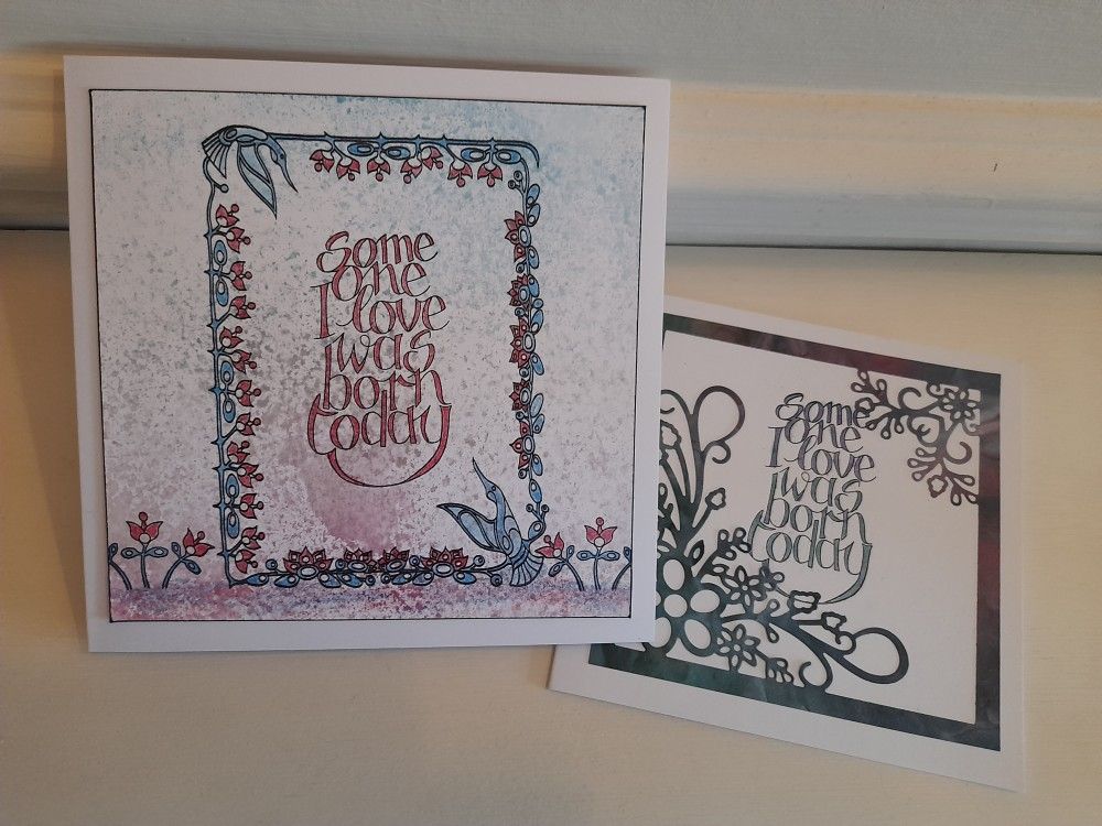 Day 3 of my little ’12 Days of Clarity’ challenge, and today I’ve used the ‘someone I love’ stamps from the March Claritystamp New Design Club. I have to confess this one hadn’t been out of the package before today, but I love it now I’ve actually used it. These two cards are both designed for birthdays, but the stamp would also work really well for a new baby card.