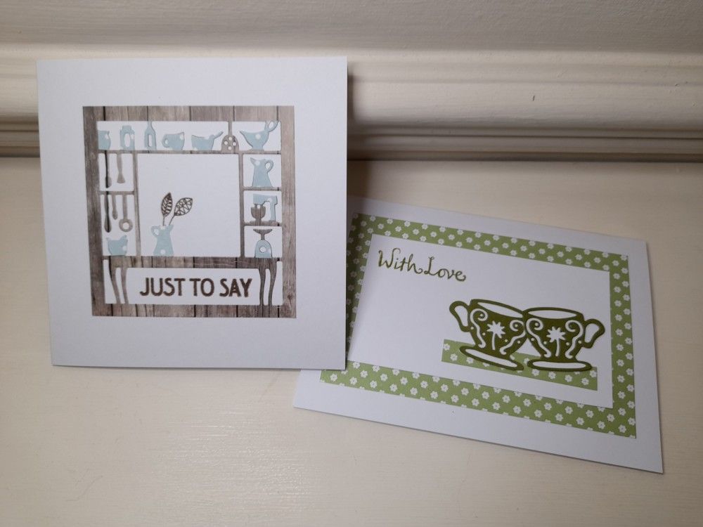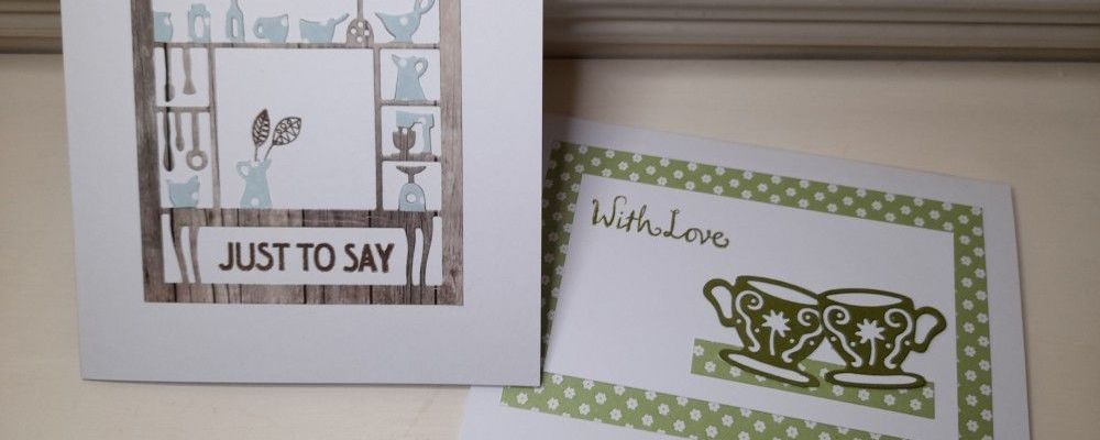 Day 3 of my ’12 Dies of Clarity’ personal challenge, using the Claritystamp 2020 new design club dies. These two cards use the March ‘cup n saucer’ aperture die. The set comes with 2 dies – the dresser and the teacup, and I decided to use them separately on the two cards.