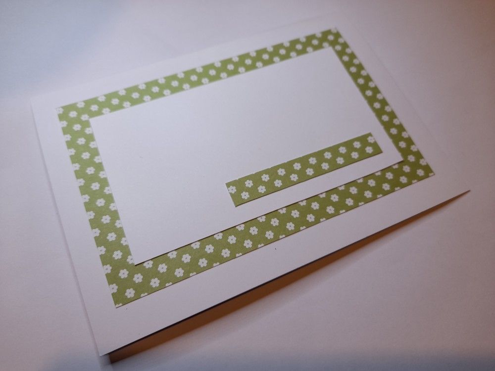 I found a piece of green floral paper in my stash, and layered that up on an A6 card blank with a piece of white card. I also added a small strip of the green floral paper for the cups to sit on.
