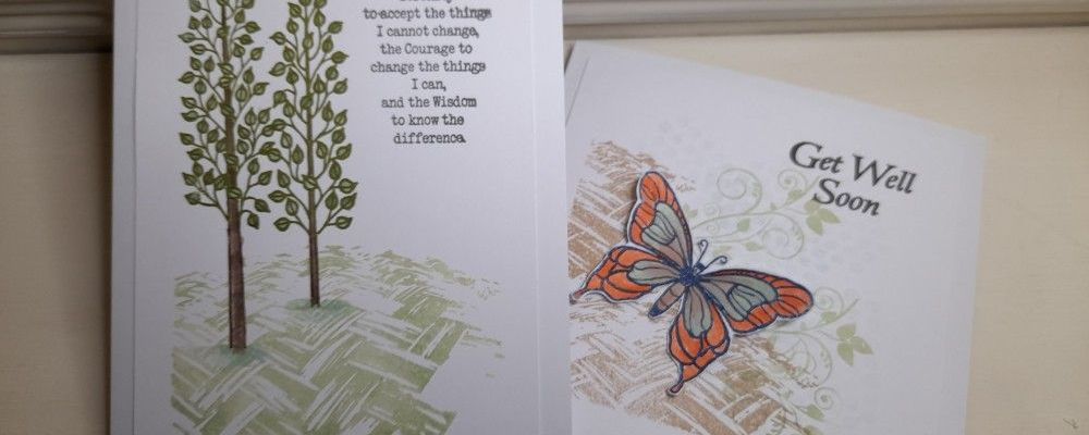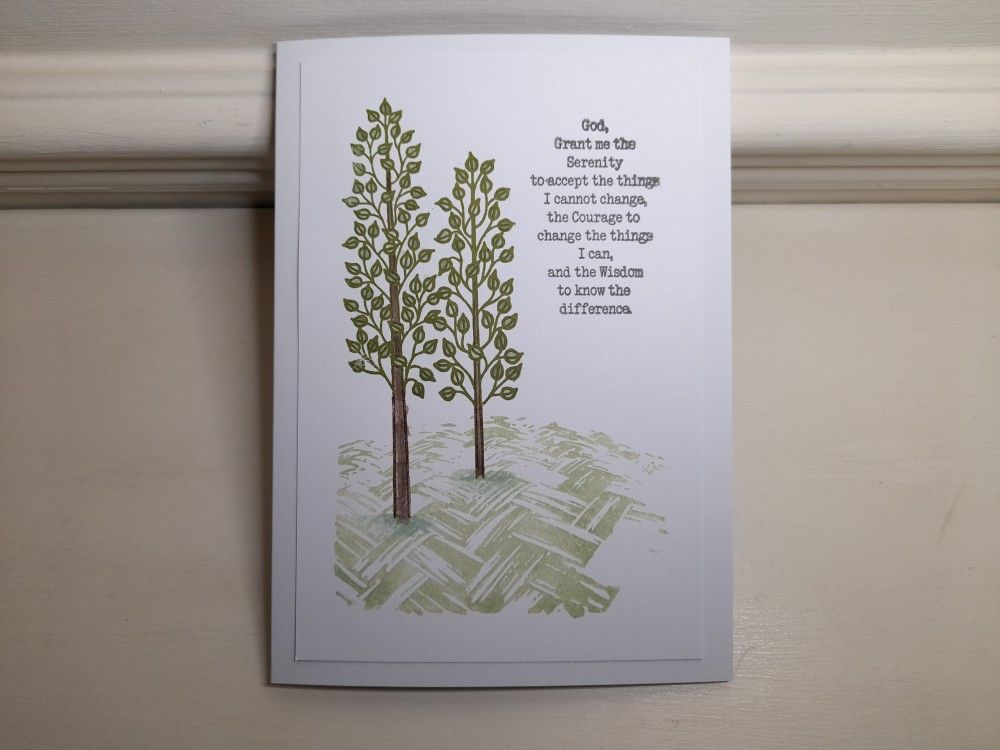I finished the card with the serenity prayer, from one of the poetry stamp sets. I smudged it a bit when stamping it!! The topper then went onto a 5×7 card blank.