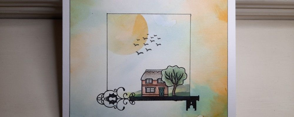 Welcome to my crafty blog where I’m now on day 9 of my ’12 Days of Clarity’ challenge, using the ‘gothic key’ stamp from Claritystamp’s September New Design Club. Yet another one that hadn’t been out of it’s packet until today. I needed to make another new home card, and took the inspiration from Dee Paramour’s design on the project sheet that came with the stamp, although hers had birds perched on it, not a house!