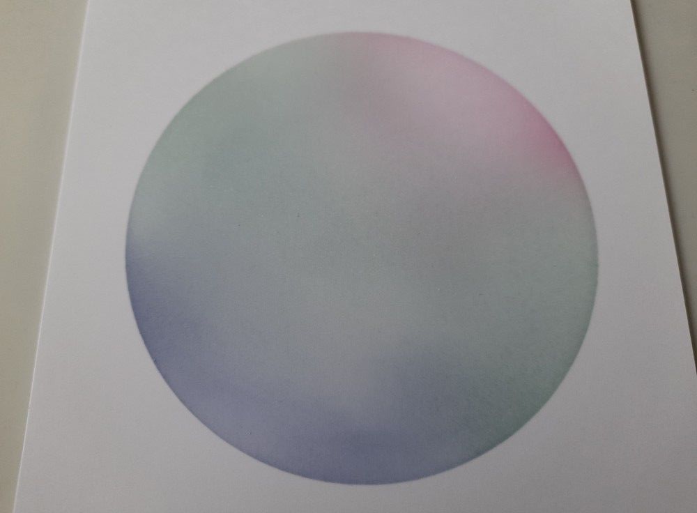 I started with a square of white card, cut down to fit a 6×6 card blank, and attached the Clarity circle stencil to the front using masking tape. I then brushed Distress Oxide inks across it with a blending brush – I used ‘picked raspberry’, ‘speckled egg’ and ‘chipped sapphire’ (which won’t surprise regular readers of this blog!)