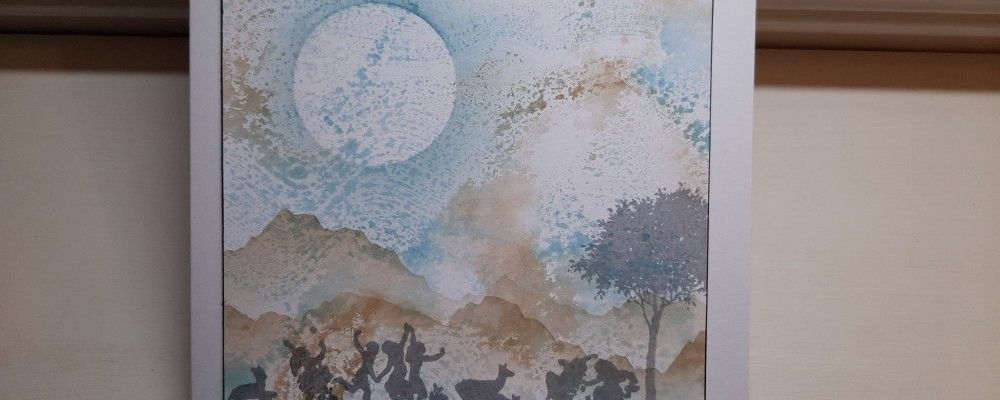 I wanted to add a bit more interest to the background, so used the Claritystamp ‘mountains’ mask and brushed Adirondack ‘latte’ ink onto the card. I also used one of the moon masks, and brushed ‘broken china’ Distress Ink around it to give the effect of the sun. Just to say – there’s no real method in the different inks I use (apart from Archival for stamped images & sentiments), it tends to be related to the best colour match I have from my various stash!
