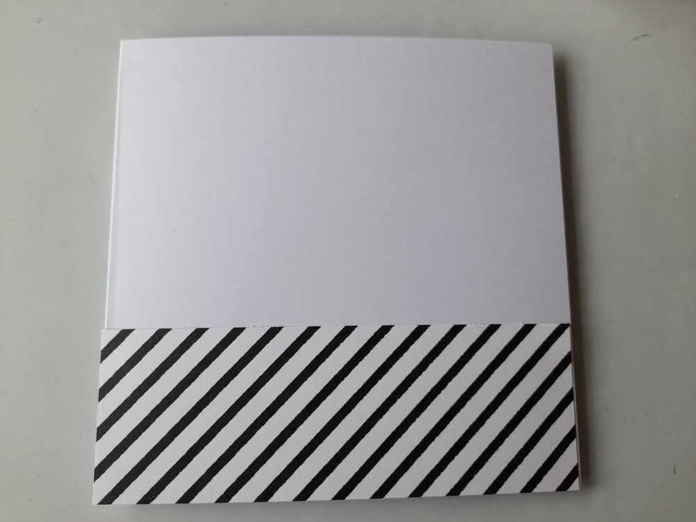 So unsurprisingly I started with a piece of striped paper! I cut it down to fit across the bottom third of a 6×6 card blank