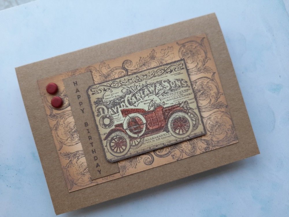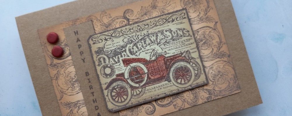 Welcome to my crafty blog. Today’s card is a bit of a departure from my usual style, with the ‘chunky vintage car tag’ stamp from Crafty Individuals as the focal point. The starting point for this card was the current challenge of ‘very vintage’ over at TGIF, coupled with the sketch from As You See It (which I rotated) and the colour palette of yellow. orange, red & kraft from Color Throwdown