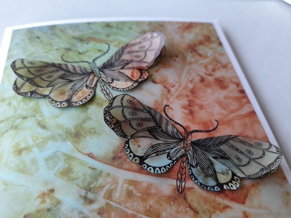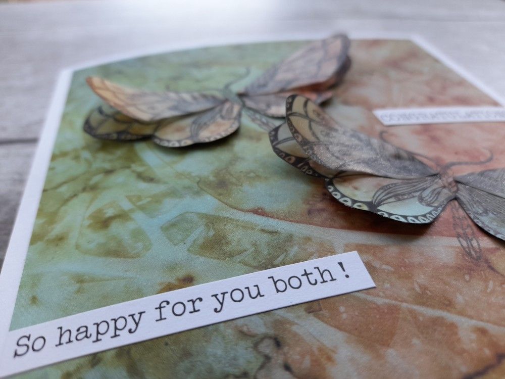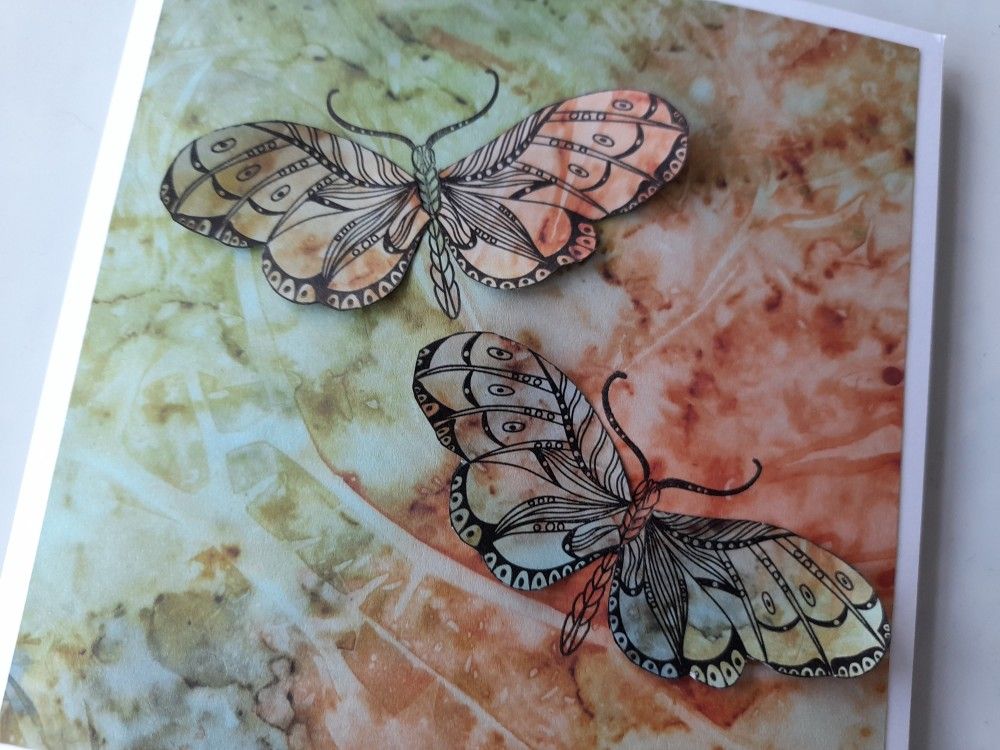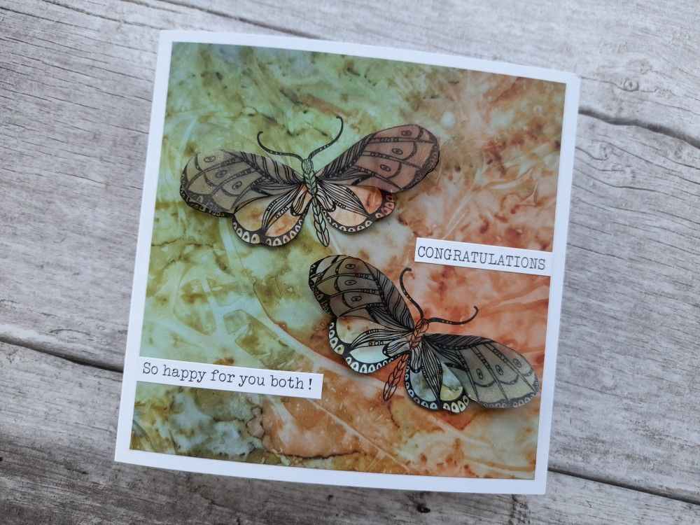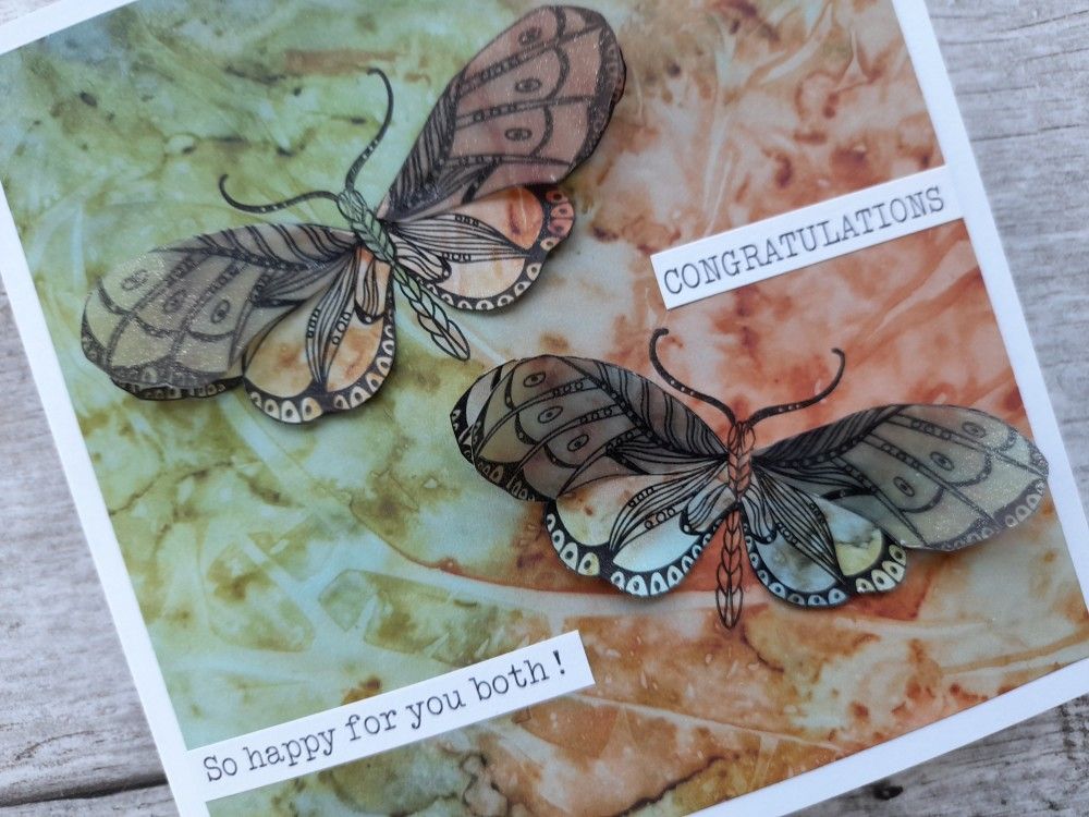 Welcome to my crafty blog. I’ve been playing with the new ‘butterflies and moths’ stamps designed by Cherry Green for Claritystamp. Barbara Gray did a brilliant online step by step yesterday for the monthly Moment of Clarity, and I didn’t want to put them away afterwards! I’ve used a combination of the Clarity designer paper and parchment for this card – because they are identical designs it’s easy to produce matching overlay sections.