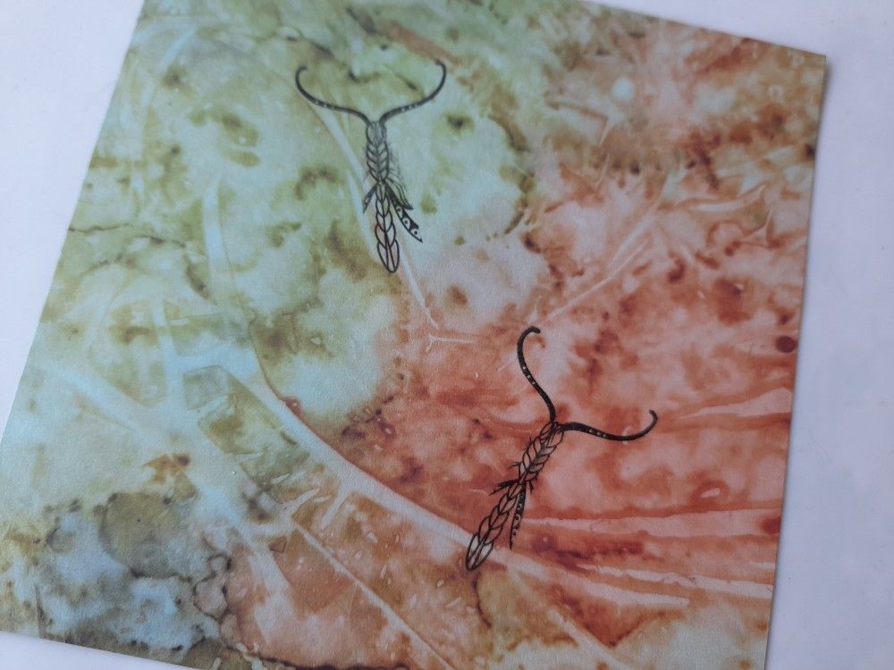 I started with a piece of the 8×8 ‘Indian Summer’ paper and cut it to fit on a 6×6 card blank. I then masked off the wings on the butterfly stamp before inking it with black Archival, so that I just had the butterfly’s body stamped on the paper.