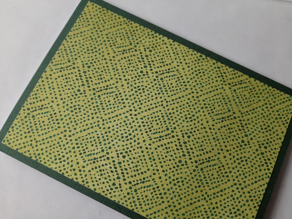 I started with a piece of the SU ‘forever greenery’ paper, which I trimmed down for an A6 card and then mounted on an A6 mat of dark green card. This is the reverse of one of the sheets – I often forget to look at the other side of the my papers and they’re great for general backgrounds.