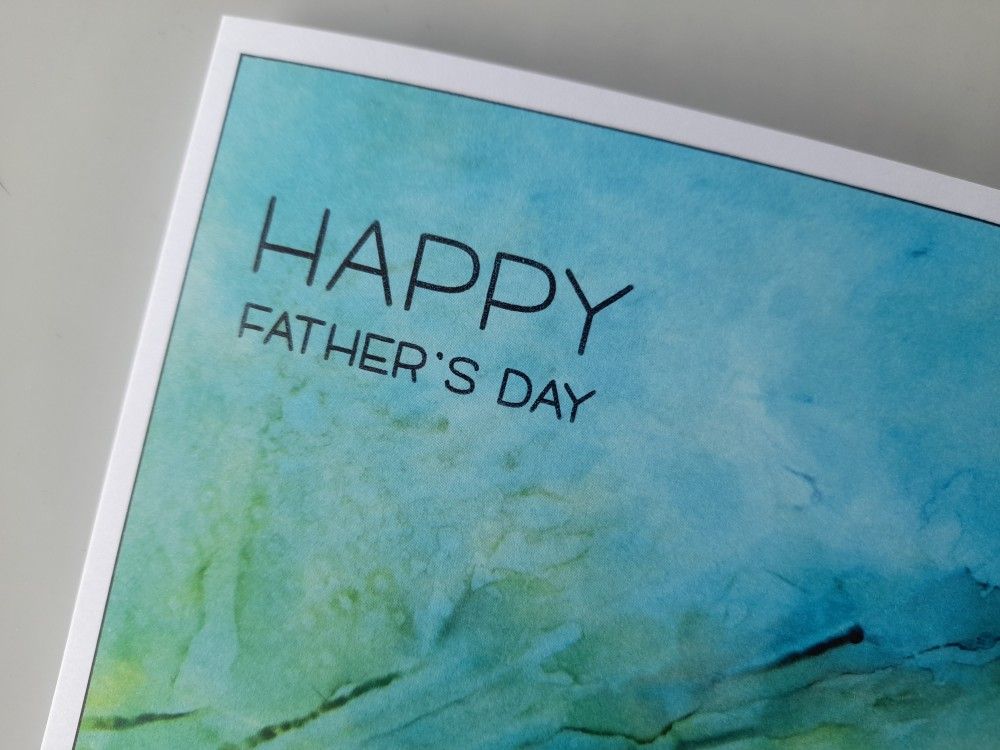 I then trimmed a piece of Claritystamp’s ‘Antarctica’ paper to fit on a 6×6 card blank, and ran a black Sharpie round the edge just to give it a little definition. I thought the greens and blues in this piece were perfect to give the sense of ground and sky. I stamped the sentiment (from Lawn Fawn’s ‘happy, happy, happy’ set) in Archival black and then attached the paper to the card front.