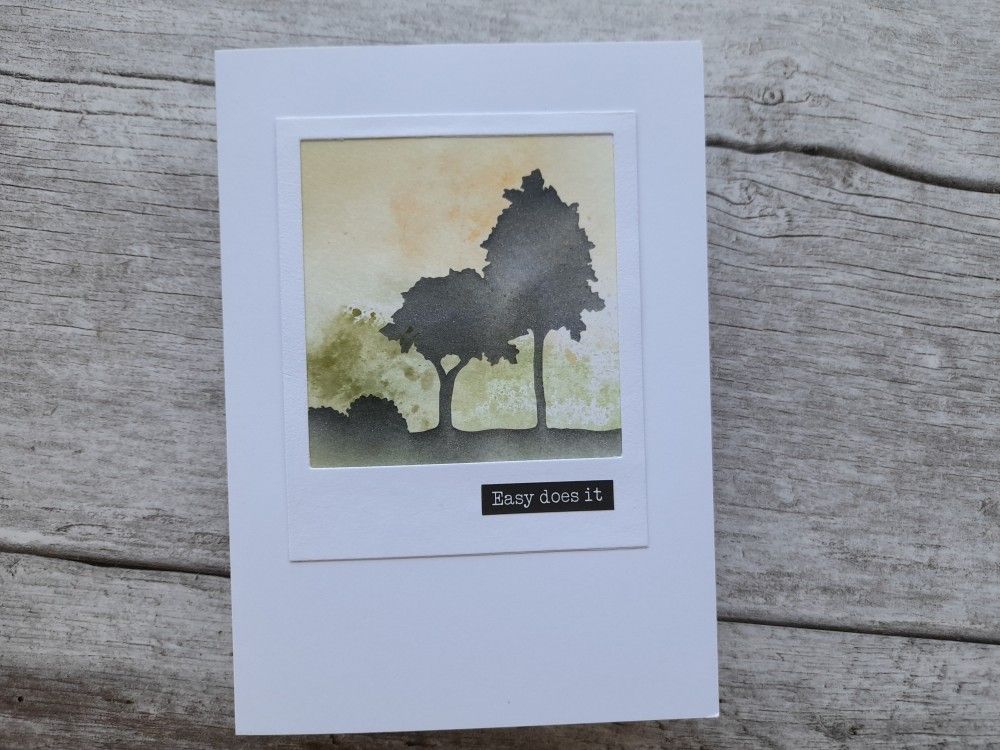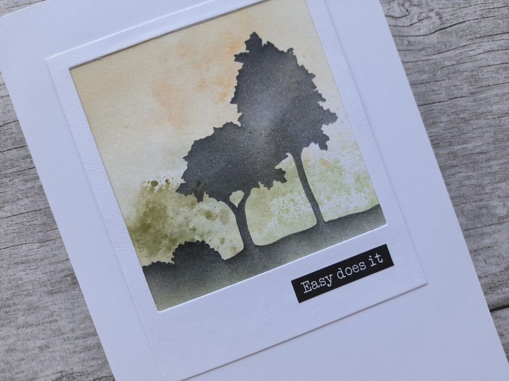 All I then needed to do was drag ‘watering can’ Archival ink through the mask onto the card using a make up sponge. Really easy! This would work just as well with a piece of designer paper – great for using up scraps.