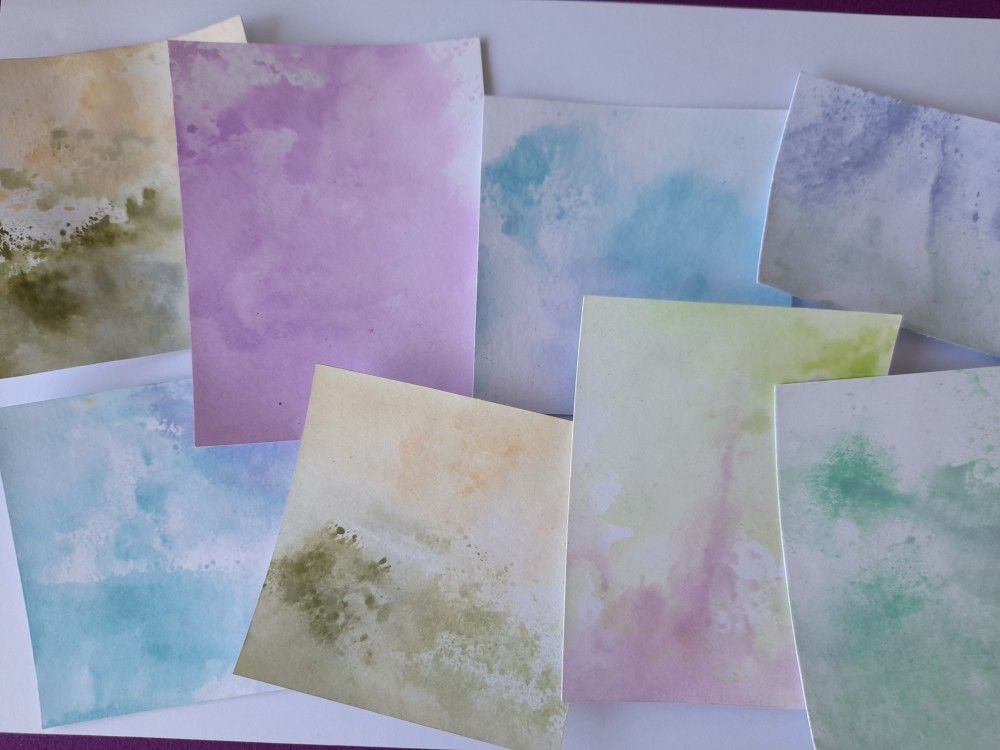 I started with my favourite technique – regular readers of this little blog will know that I’m partial to an inky background. I can’t bear to waste any of the ink on my craft mat when I’ve been colouring or blending, so always spritz it with water and mop it up onto a spare piece of card to use later. I have a growing stash of these – here’s a few samples!