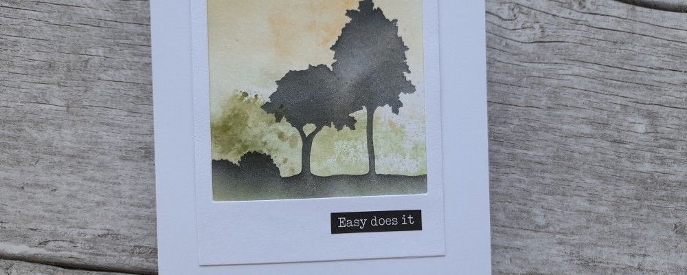 All I then needed to do was drag ‘watering can’ Archival ink through the mask onto the card using a make up sponge. Really easy! This would work just as well with a piece of designer paper – great for using up scraps.