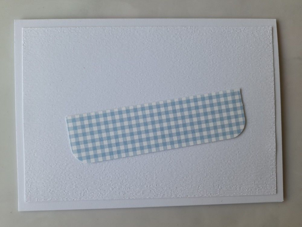 I started with a piece of white card, cut to fit on an A6 card blank, and ran it through the SU ‘subtle’ 3D embossing folder. I found some gingham check paper in my stash and cut a piece to form the trough for the pansies, using a corner rounder for the bottom. I thought that picked up the lower of the strips in GDP’s sketch, and the checks reflect the square cushions from The Card Concept. I didn’t want it to sit too high on my card, so just mounted it on a piece of scrap card instead of foam pads and then attached it to the card front (a great tip I got from Julie Hickey).
