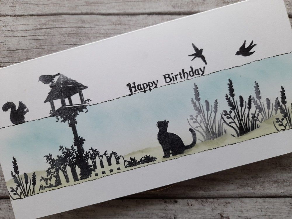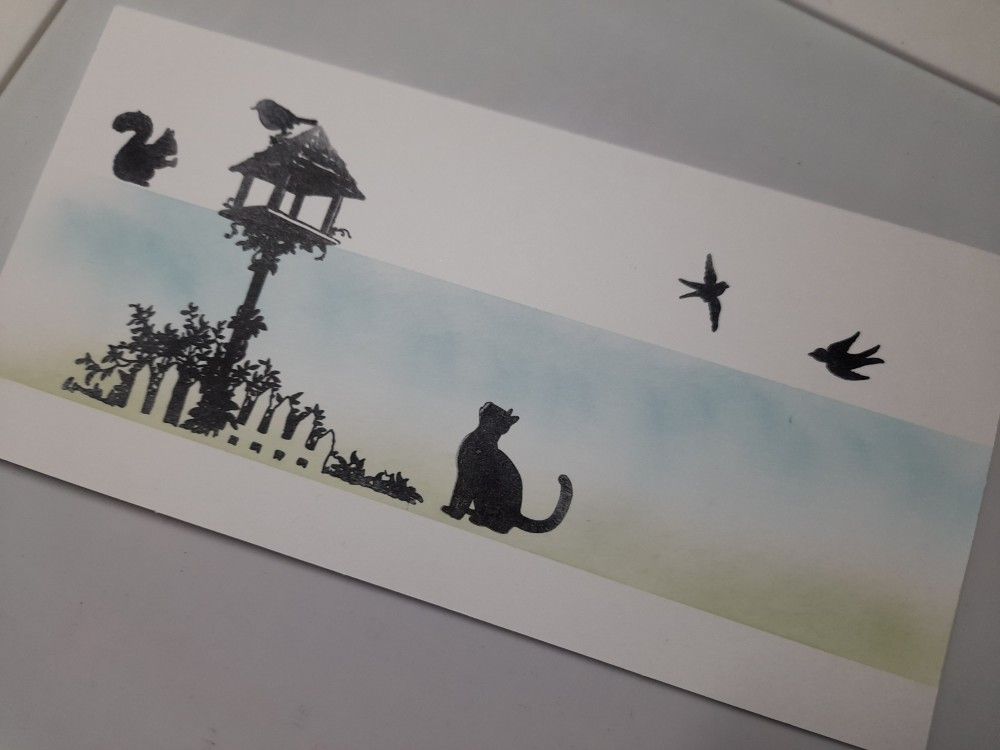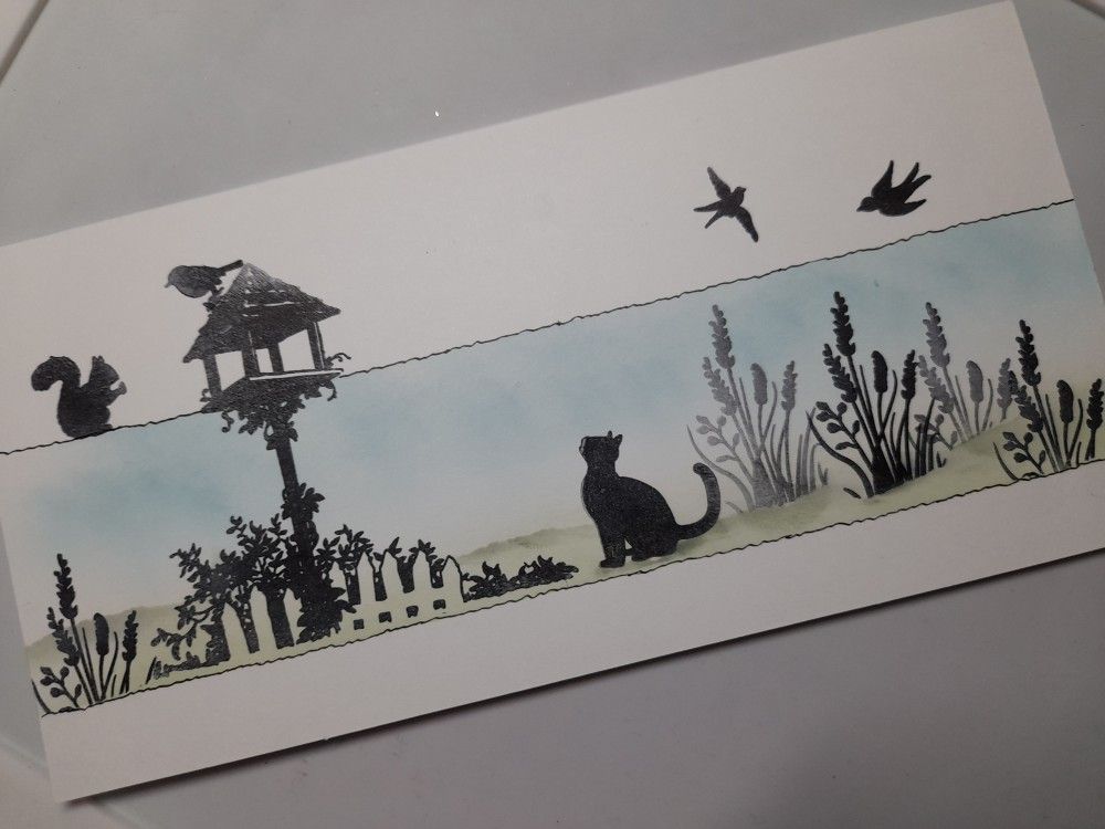 Having a young cat myself, I fear for that bird…This is such a wonderful and realistic scene and perfect for the slimline style. Thanks for joining in at Inkspirational Challenges. Sorry to be late.