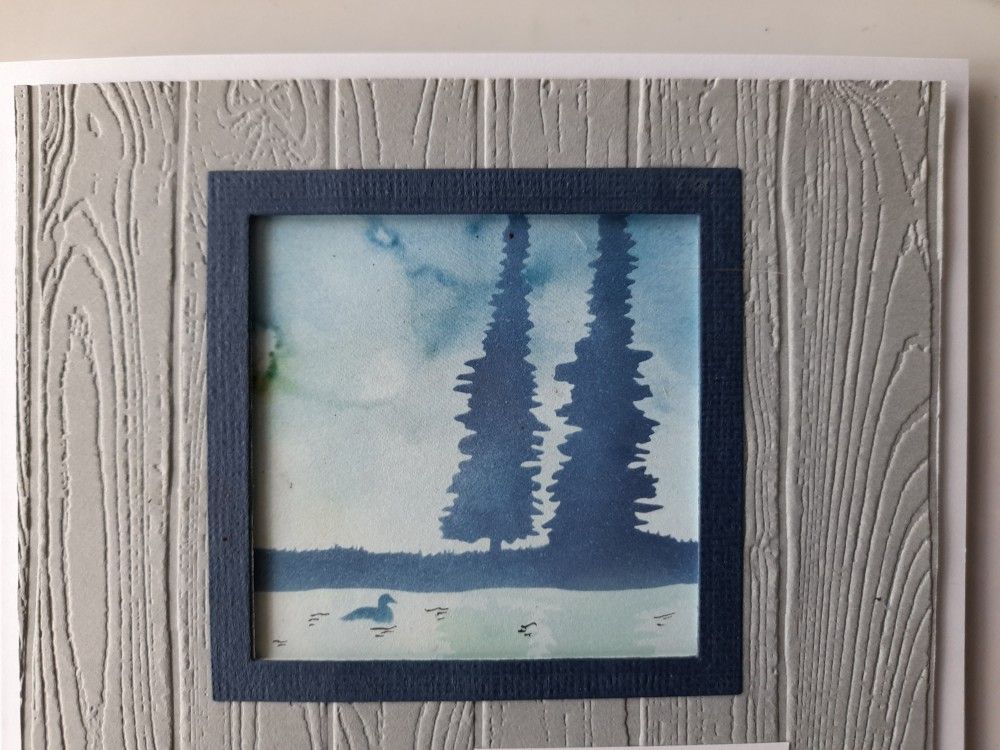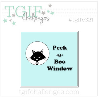 I’m very pleased with this tranquil scene, and I’m going to share it with a couple of this week’s challenges. TGIF challenges want a window in their entries this week, and I also took quite a bit of inspiration from The Card Concept‘s photo. I picked up the framed landscape on the shelf, the wood panelling on the wall, and just had to include the little duck nestled in to the left of the shelf!