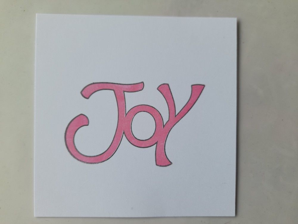 I was inspired to use one of the Clarity word stamps by Barbara Gray’s ‘Moment of Clarity’ Facebook live on Friday. I don’t have the ‘love’ stamp that she used, so went with ‘joy’ instead. I stamped the outline in Archival ‘watering can’ and then used ‘picked raspberry’ Distress Oxide for the infill.