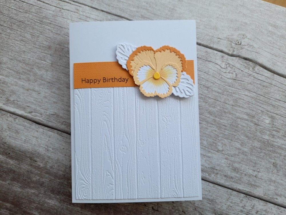 Welcome to my crafty blog, and another pansy! I do really like the ‘pansy patch’ set from Stampin’ Up! – the versatility with being able to create flowers by stamping and just with die cuts is so useful. Unusually for me today’s card has got very little stamping on it, apart from the sentiment and I decided to make the die cut pansy the focus.