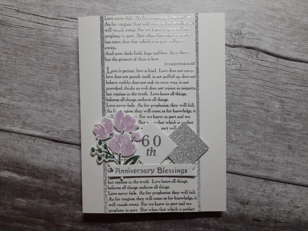 Welcome to my crafty blog and my second post of the day. This one is a diamond wedding anniversary card that I was asked to make, and I’ve dug back into my stash of Claritystamps for some old favourites.