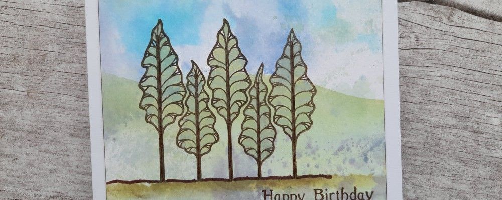 Welcome to my crafty blog. I’m feeling happy with today’s card as I’ve used up another of the many inky mop-up backgrounds in my stash without making another one in the process! I’ve been trying to make a few more masculine cards recently, and Claritystamp’s ‘tree rows’ stamps give a more contemporary feel to a landscape. I picked up the ‘sky and trees’ theme from the new challenge at Just Add Ink and combined it with this week’s colours from Color Throwdown