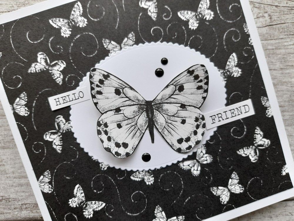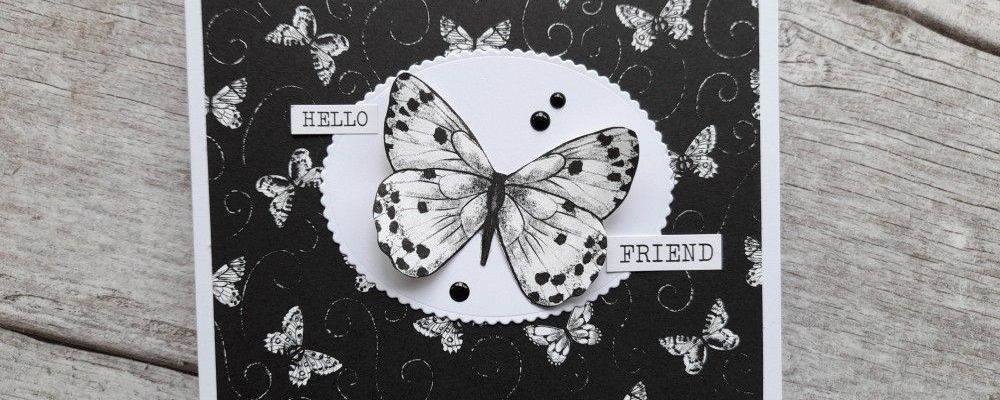 Such a beautiful card! Black and white is so very striking and your butterfly is beautiful. Thanks so much for joining us at Freshly Made Sketches.
