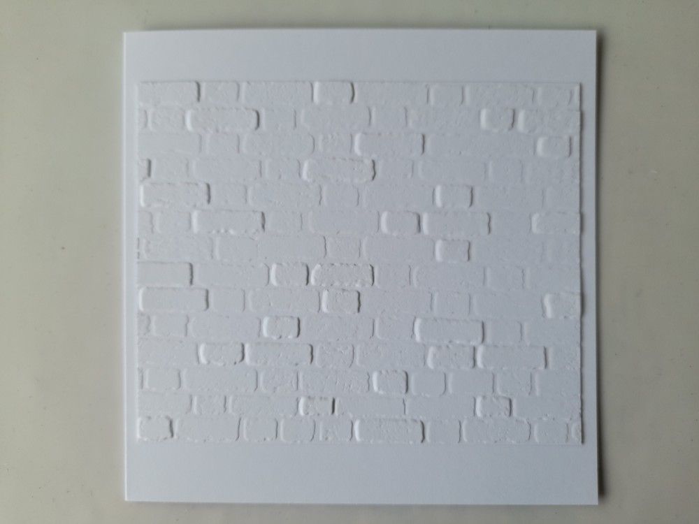 I started with a piece of white card and ran it through Stampin’ Up!’s ‘brick & mortar’ embossing folder before attaching it to a 6×6 card blank.