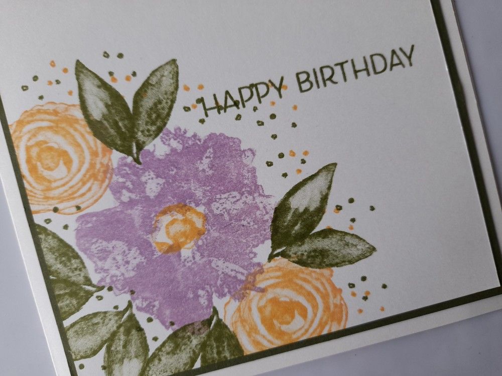 Welcome to my crafty blog and another outing for Stampin’ Up’s ‘artistically inked’ set. I’ve used the colours from the current challenge at Colour INKspiration, which is on Facebook. They aren’t a combination I’d usually pick up myself, but do work really well for floral cards though.