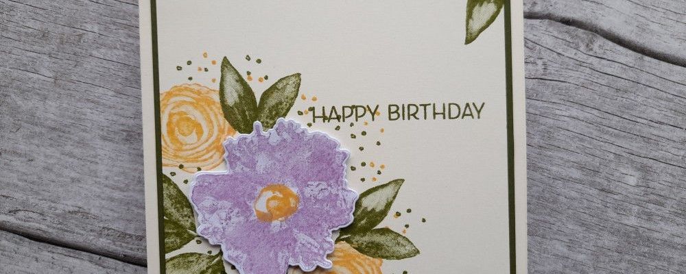 Welcome to my crafty blog and another outing for Stampin’ Up’s ‘artistically inked’ set. I’ve used the colours from the current challenge at Colour INKspiration, which is on Facebook. They aren’t a combination I’d usually pick up myself, but do work really well for floral cards though.