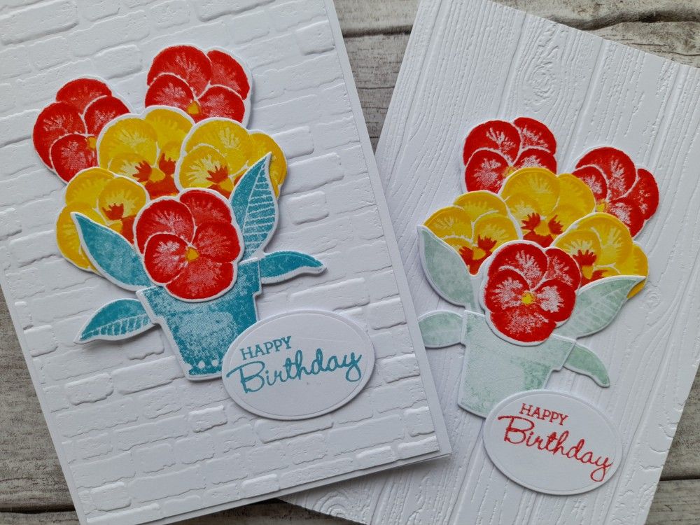 What a cheery pot of pansies Deborah! I think I prefer the brighter blue of version two, but both are lovely and I really like the embossed background detail on both. Thanks for sharing with us over at CAS Colours & Sketches this week!
