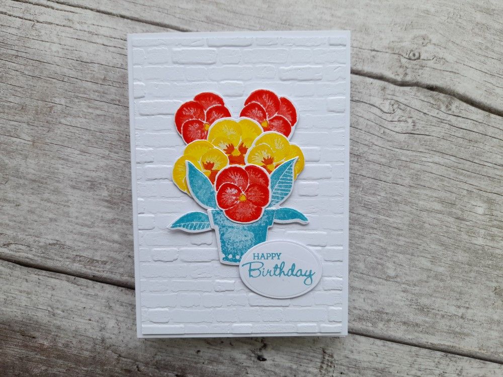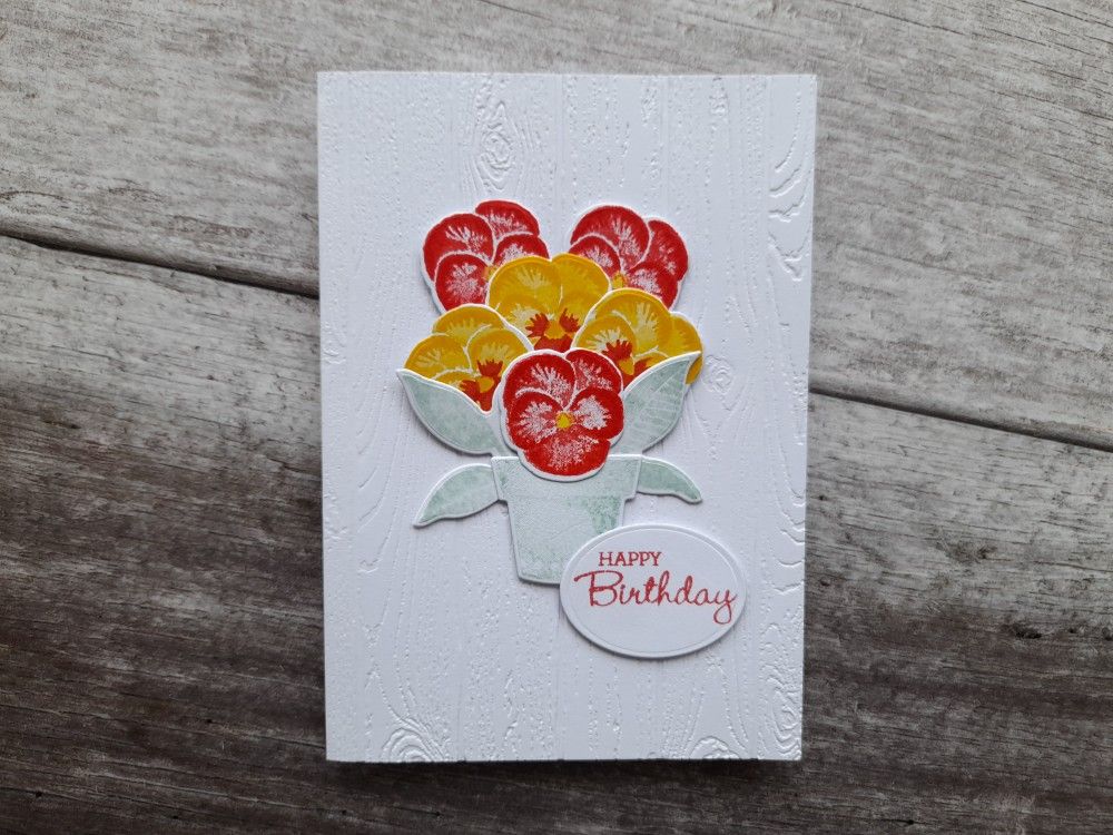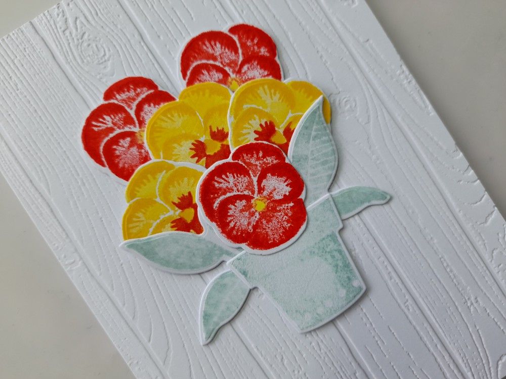 Such a beautiful pansy pot! The background embossing makes this pot pop! Thank you for playing along with CC&S challenge, Deborah.