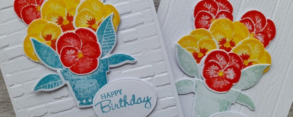 What a cheery pot of pansies Deborah! I think I prefer the brighter blue of version two, but both are lovely and I really like the embossed background detail on both. Thanks for sharing with us over at CAS Colours & Sketches this week!