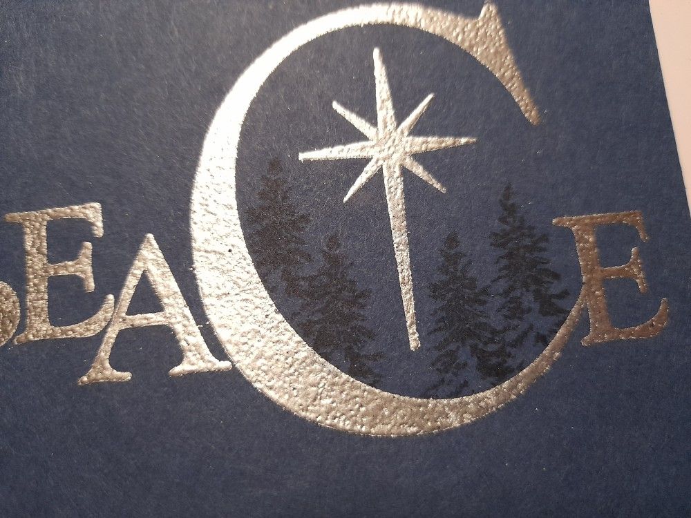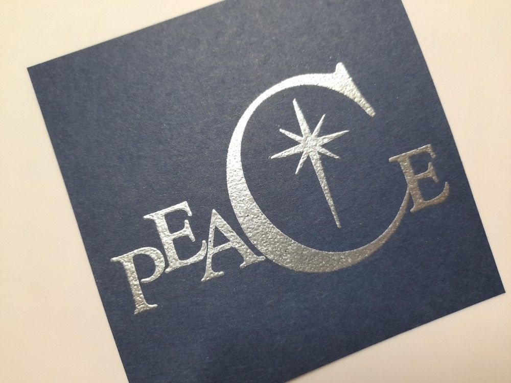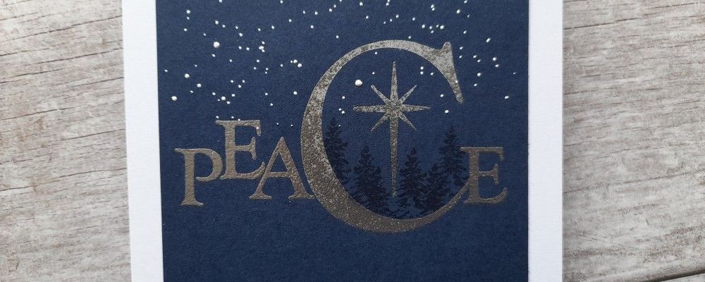 I started with a piece of navy card and heat embossed ‘peace’ and the star with Wow’s metallic silver powder.