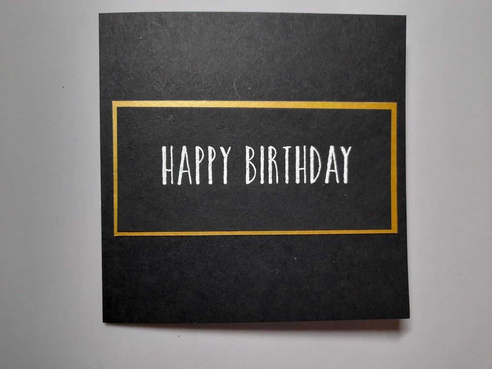 I started with a piece of black card and stamped the sentiment from SU’s ‘perennial birthday’ onto it, heat embossing it with WOW’s bright white powder. I then mounted it onto gold card and attached it to the front of a 5×5 card blank.