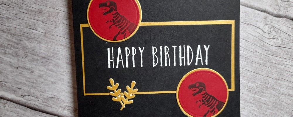 Welcome to my crafty blog. Today’s card is for my son’s birthday – although he’s now in his thirties, he was obsessed with dinosaurs when he was small so I just couldn’t resist going for a card that I’ve based on the Jurassic Park films logo, using Stampin’ Up!’s ‘no bones about it’ set. I’ve used the layout from this week’s Global Design Project and I thought it also fits the theme of ‘retro’ from Inskpirational