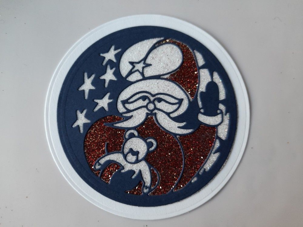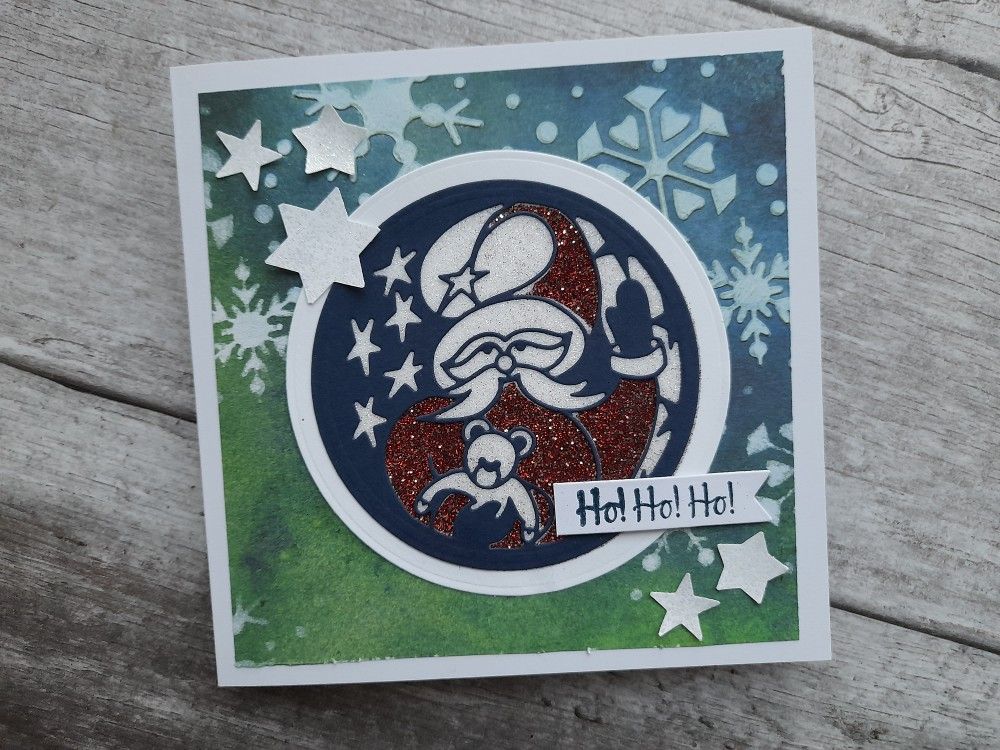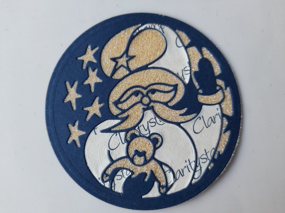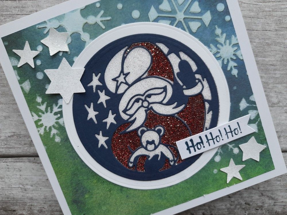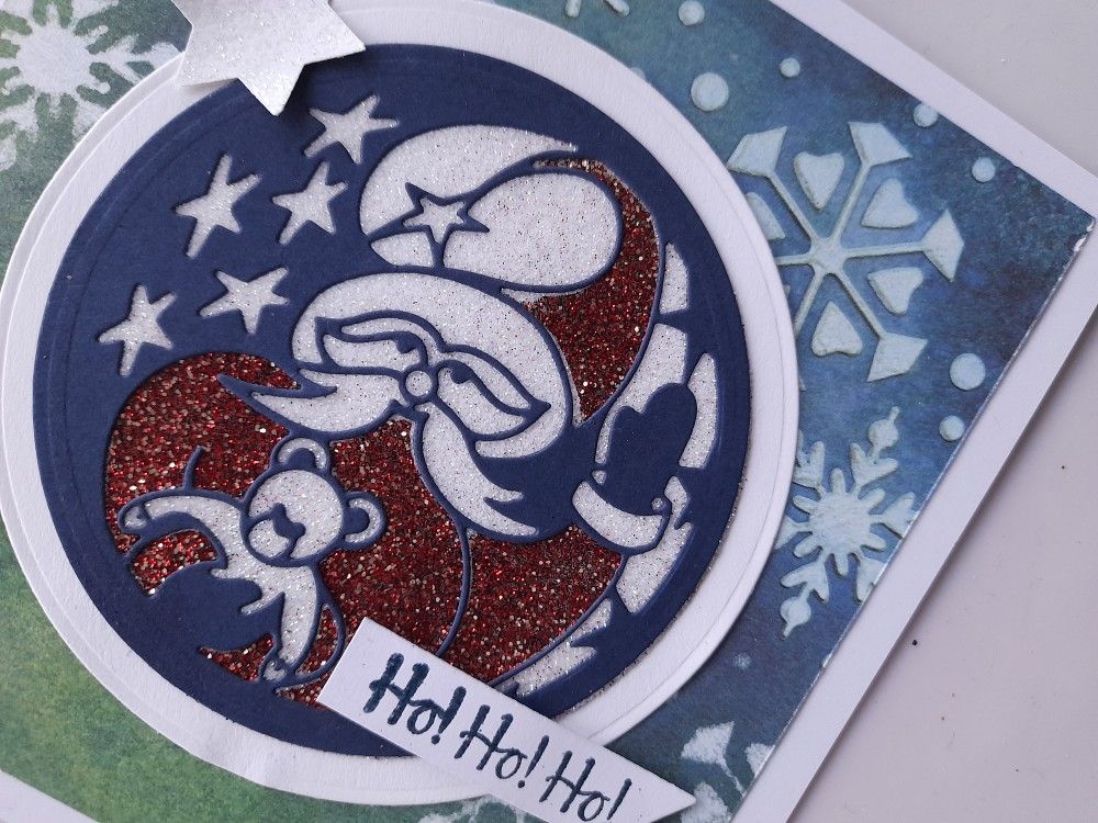 So I started by die cutting the Christmas Santa aperture die in navy card using a nested circle die to fully cut it out.